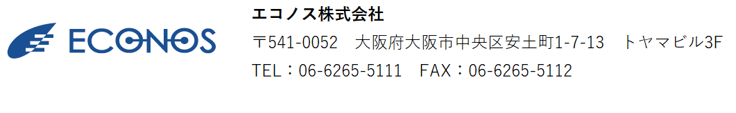 【個人情報等の取り扱いに関して】 エコノス株式会社(以下「当社」)は、以下のとおり個人情報保護方針を定め、個人情報保護の仕組みを構築し、全従業員に個人情報保護の重要性の認識と取組みを徹底させることにより、個人情報の保護を推進致します。 個人情報の管理 当社は、お客さまの個人情報を正確かつ最新の状態に保ち、個人情報への不正アクセス・紛失・破損・改ざん・漏洩などを防止するため、セキュリティシステムの維持・管理体制の整備・社員教育の徹底等の必要な措置を講じ、安全対策を実施し個人情報の厳重な管理を行ないます。 個人情報の利用目的 お客さまからお預かりした個人情報は、当社からのご連絡や業務のご案内やご質問に対する回答として、電子メールや資料のご送付に利用いたします。 個人情報の安全対策 当社は、個人情報の正確性及び安全性確保のために、セキュリティに万全の対策を講じています。 ご本人の照会 お客さまがご本人の個人情報の照会・修正・削除などをご希望される場合には、ご本人であることを確認の上、対応させていただきます。 法令、規範の遵守と見直し 当社は、保有する個人情報に関して適用される日本の法令、その他規範を遵守するとともに、本ポリシーの内容を適宜見直し、その改善に努めます。 お問い合せ 当社の個人情報の取扱に関するお問い合せは下記までご連絡ください。 エコノス株式会社 〒541-0052 大阪市中央区安土町1-7-13 トヤマビル3F TEL 06-6265-5111 FAX 06-6265-5112 MAIL:info@econos.jp 個人情報保護方針に同意して送信